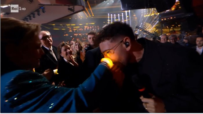 Rocco Hunt ha infiammato l’Ariston durante la serata conclusiva del 75esimo festival di Sanremo. Il rapper di Santa Margherita, in gara con “Mille vote ancora”, durante la sua esibizione è sceso dal palco per raggiungere mamma Alfonsina e papà Giovanni, ai quali ha rivolto un saluto speciale. "La mia canzone dice 'me manca assaje mamma mia, 'a casa mia'. Appena l'ha sentita è venuta subito a Sanremo", ha spiegato l’artista al termine dell’esibizione, rivolgendosi a Carlo Conti.