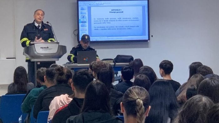La formazione è stata incentrata sul tema della distrazione e degli effetti causati dall’assunzione di sostanze stupefacenti e alcoliche alla guida, con un approfondimento sulle regole del nuovo codice della strada per i tanti ragazzi presenti neo patentati o prossimi a conseguire la patente di guida.