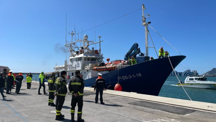 Alle 11:25 ha attraccato al molo Manfredi di Salerno la "Aita Mari", nave ong che ha soccorso 108 persone nel mar Mediterraneo.
