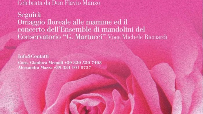Domenica 11 maggio, alle ore 17.30, don Flavio Manzo celebrerà la Santa Messa di Suffragio, presso l’Ossario del Cimitero di Salerno. A seguire saranno donate delle rose bianche alle mamme e si terrà un concerto dell'Ensemble di mandolini del Conservatorio Martucci di Salerno (voce Michele Ricciardi).