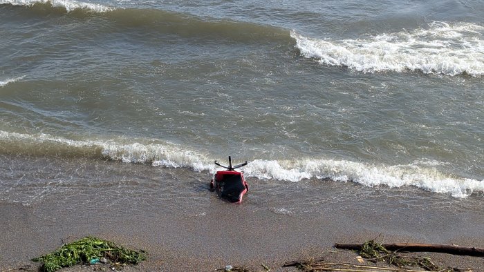 Gettata o trascinata dall'acqua dopo il vento di questi ultimi giorni, fa poca differenza. E' la testimonianza plastica di una inciviltà senza rispetto per il mare, l'ambiente circostante e nemmeno se stessi.