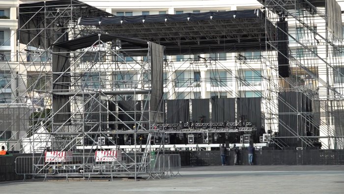 Pronto l'imponente palco allestito nello slargo sul mare. Ingresso libero e varchi aperti a partire dalle 19, con la serata che prenderà il via alle 20.45 con i conduttori Pippo Pelo, Adriana Petro ed il dj set di Pika Dj.