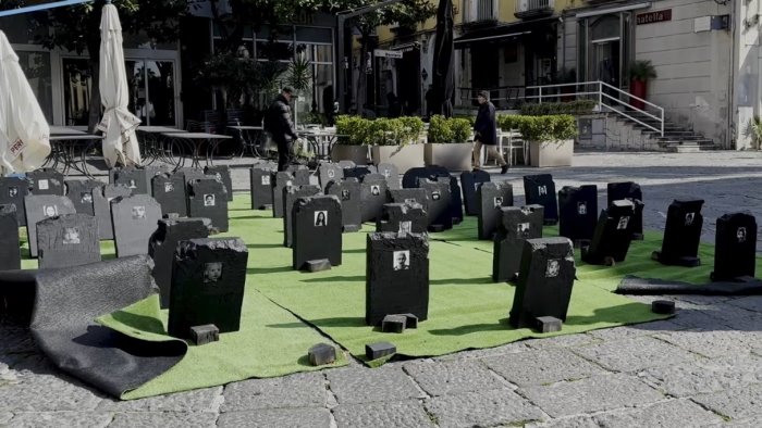 È stata realizzata dall'artista Michele Tombolini l'installazione comparsa nella notte tra giovedì in piazza Portanova a Salerno e nella quale comparivano numerose lapidi in polistirolo su di un prato verde. L'installazione, in quanto non autorizzata, era stata rimossa dagli agenti della Polizia Municipale. Ora dal 18 aprile sarà ospitata nei nuovi spazi della galleria d'arte di Daniela Diodato, nel cuore di Salerno.