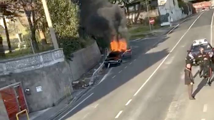 Necessario anche l'intervento dei vigili del fuoco, che hanno spento l'incendio anche se ormai l'auto era stata completamente divorata dalle fiamme.