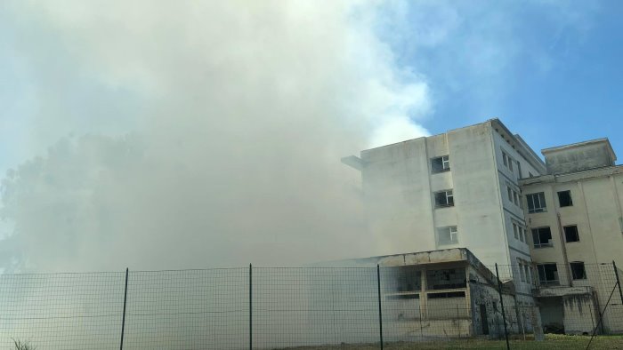 Salerno: fumo nero e fiamme dall'ex ospedale Torre Angellara