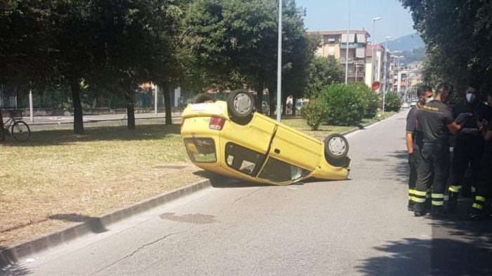Paura a Salerno: auto si ribalta in via Angrisani