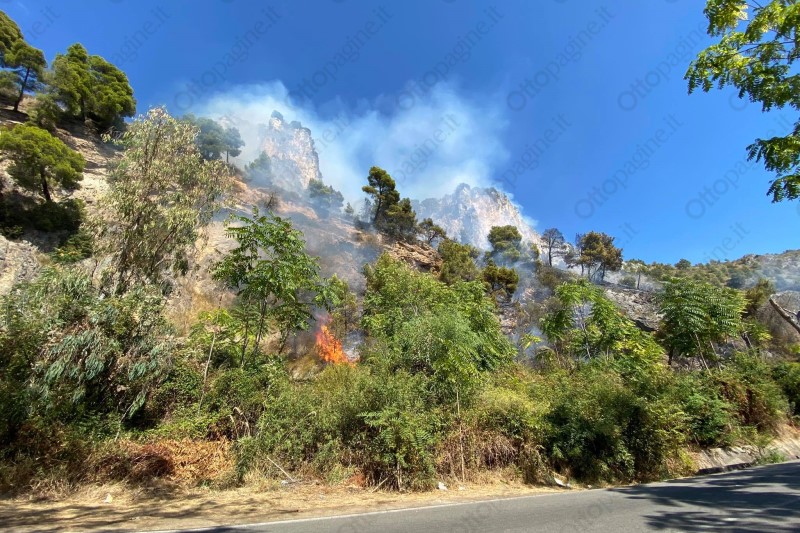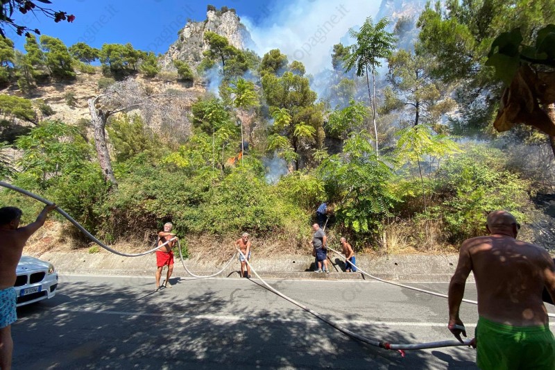 Continua a bruciare il verde della strada del Mingardo. Un tremendo incendio è divampato ieri pomeriggio sul crostone roccioso che affianca la strada di collegamento tra Marina di Camerota e Palinuro. Fiamme e fumo hanno avvolto quel tratto di strada, rendendo necessaria la chiusura temporanea dell'arteria. Vigili del Fuoco, uomini della Comunità Montana e volontari, grazie anche all'aiuto dei turisti presenti sul posto, hanno lavorato diverse ora prima di riuscire a mettere in sicurezza la zona. Nella tarda serata di ieri la strada è stata riaperta, ma il rogo non estinto del tutto. Alle 7 di questa mattina, le squadre antincendio hanno ripreso le operazioni. Sempre in mattinata sono attesa sul posto anche le squadre della Provincia di Salerno per effettuare un sopralluogo.