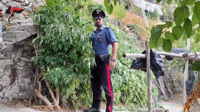 I carabinieri della Compagnia di Amalfi hanno arrestato a Ravello due persone per coltivazione illegale di marijuana. I militari, in seguito ad alcune segnalazioni ricevute, sono intervenuti nella frazione di Torello, scoprendo delle inflorescenze sospette tra i limoneti. Le piante superavano in altezza gli alberi di limoni, nonostante ci fosse un telone che cercava di coprire il tutto. I carabinieri hanno effettuato un servizio specifico, durato più giorni, che ha consentito di cogliere sul fatto due persone, rispettivamente padre e figlia, di 74 e 45 anni, che erano intente a controllare le piante. I militari hanno sequestrato 18 arbusti di canapa indica, dell’altezza variabile tra i 2 metri ed i 3 metri e mezzo, che sul mercato avrebbero avuto un valore di circa 20 mila euro. I due sono finiti agli arresti domiciliari con l'accusa di produzione, traffico e detenzione illecita di sostanze stupefacenti o psicotrope. La droga, dopo essere stata estirpata, è stata sequestrata ed è custodita in appositi locali in attesa delle analisi tecniche e della successiva distruzione disposta dalla magistratura.