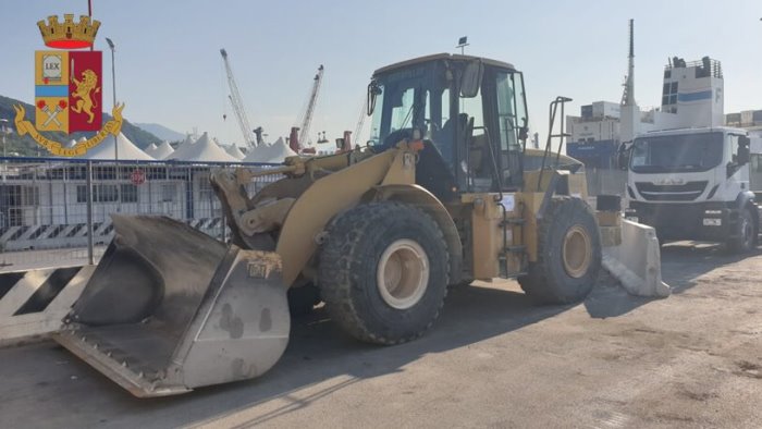 Caterpillar rubato in viaggio verso l'estero, recuperato dalla Polizia di Stato su una nave a Salerno. In particolare, gli Agenti dell’Ufficio Prevenzione Generale e Soccorso Pubblico, a seguito di chiamata al Numero Unico di Emergenza 112, sono intervenuti nel porto commerciale di Salerno dove all’interno dell’area portuale veniva segnalata la presenza di una macchina operatrice di ingente valore, marca caterpillar mod.966G, oggeto di una denuncia di furto.
