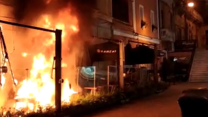 Paura nel pomeriggio di oggi su Corso Vittorio Emanuele per un incendio divampato nel dehor di un ristorante giapponese. Imponenti le fiamme che hanno lambito il palazzo e carbonizzato sedie e tavolini, sprigionando un denso fumo nero.