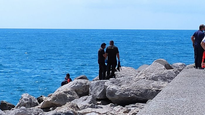 Il corpo di un uomo senza vita è stato scoperto incastrato tra gli scogli che affacciano sul molo Masuccio Salernitano. A far scattare l'allarme è stata una persona che ha notato il cadavere.