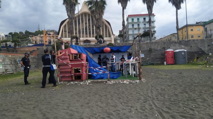 In azione il personale della Polizia municipale, della Capitaneria di porto e della Guardia di finanza di Salerno: i sigilli sono scattati per una struttura allestita nei pressi del lotto 1 del litorale di Torrione.