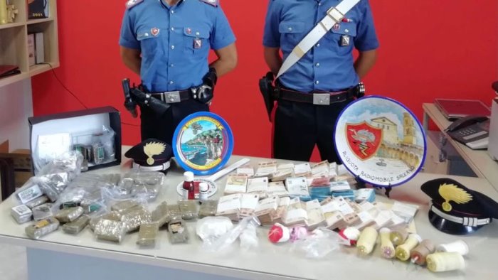 I carabinieri della Compagnia di Salerno hanno effettuato un sequestro record in un'abitazione di Mercatello. I militari nell'ambito di una perquisizione hanno rinvenuto quasi 6 chili di hashish, oltre 300 grammi di cocaina, 3,5 chili di materiale esplodente e circa 120.000 euro in contanti. Due fratelli, un 36enne ed un 39enne, sono finiti in carcere.