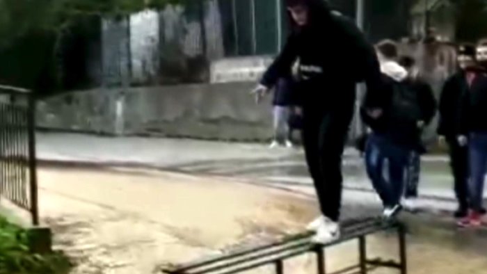 Studenti costretti ad utilizzare una passerella di fortuna per guadare un fiume d’acqua davanti scuola. Sono scene surreali quelle che arrivano da Salerno: a registrarle, gli alunni dell’istituto superiore “Focaccia”. Il maltempo e le forti piogge di queste ore hanno provocato allagamenti all’ingresso. Per entrare e uscire dall’edificio, dunque, ragazze e ragazzi hanno dovuto improvvisare un attraversamento di fortuna per guadare la strada.