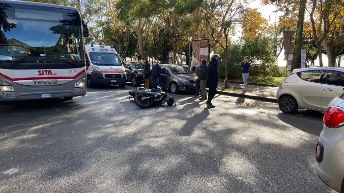 Momenti di paura e traffico in tilt questa mattina a Salerno, lungo la centralissima Via Roma. Per cause in corso di accertamento si sono scontrati un'automobile ed uno scooter. Ad avere la peggio il conducente del mezzo a due ruote, sbalzato a terra: per fortuna, però, non avrebbe riportato gravi conseguenze.