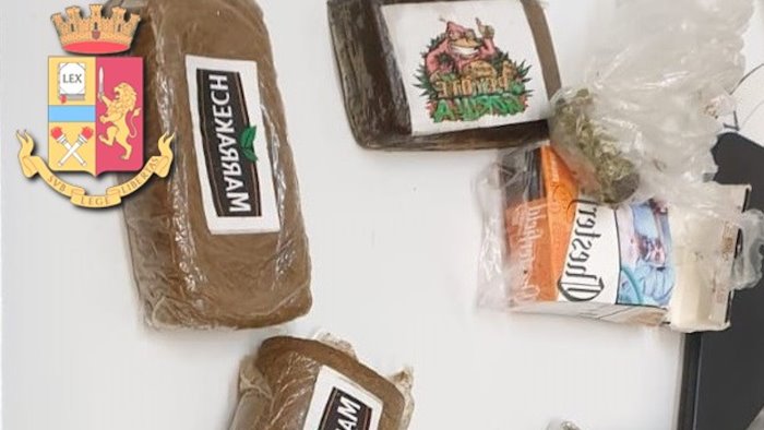 Gli agenti lo hanno sorpreso con alcune dosi di hashish e marijuana, già pronte per essere vendute. Nella successiva perquisizione domiciliare sono stati trovati altri 8 grammi di cocaina, circa 390 grammi di hashish e 25 di marijuana, oltre ad un bilancino di precisione ed altri strumenti per il confezionamento.