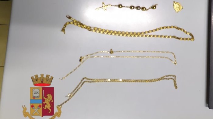 Giunti sul posto, anche grazie alle testimonianze dei presenti, gli agenti hanno riconosciuto e bloccato i giovani nelle vicinanze del locale. E' quindi scattata la perquisizione e, all'interno della loro autovettura, è stato scoperto, nascosto all'interno del vano della ruota di scorta, un sacchetto di plastica con all'interno 6 collane e 2 pendenti. Parte della refurtiva è stata contestualmente restituita ai legittimi proprietari.