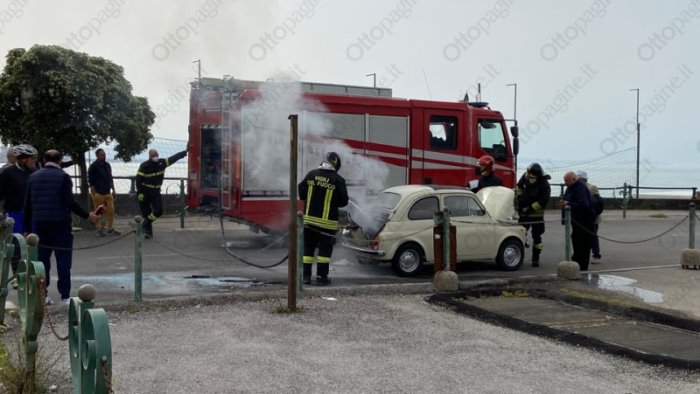 Salerno, paura a Piazza della Concordia: Fiat 500 d'epoca in fiamme