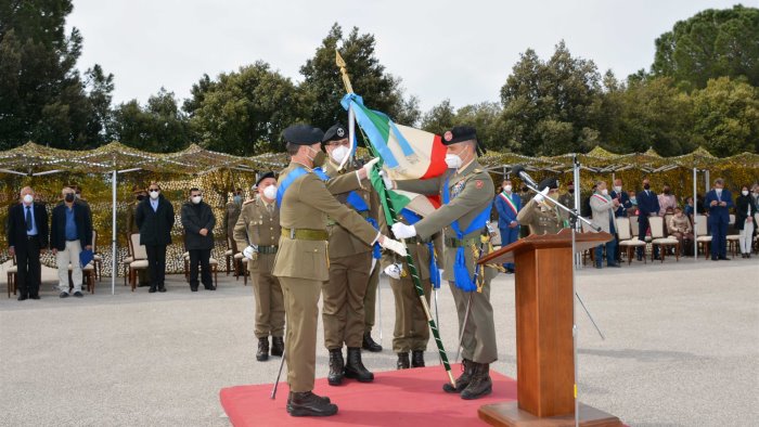 Il Colonnello Elvidio Cedrola, proveniente dallo Stato Maggiore della Difesa, ha ricevuto in custodia la Bandiera di Guerra dell’8° “Pasubio”, unità più decorata dell’Arma di Artiglieria, che si fregia di 1 medaglia d’oro, 1 medaglia d’argento e 2 medaglie di bronzo al Valor Militare, 1 medaglia di bronzo al Valor Civile e una medaglia di bronzo al merito