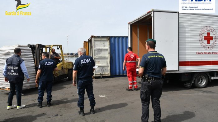 I finanzieri del comando provinciale di Salerno ed i funzionari dell'ufficio delle Dogane di Salerno hanno consegnato oltre 26 tonnellate di pellet sequestrato alla Croce Rossa.