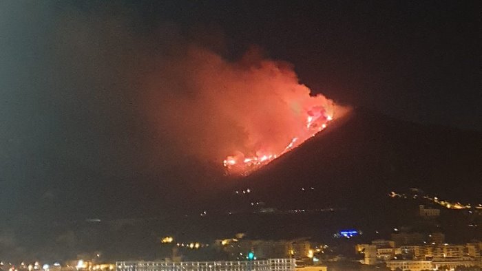 Ancora fiamme in provincia di Salerno. Un vasto incendio, nella tarda serata di ieri, è scoppiato sulle colline tra Cava de' Tirreni e Vietri sul Mare, a ridosso dell’autostrada nei pressi del viadotto nel rione Olivieri. Fiamme alte e fumo visibili per diversi chilometri, anche da Salerno e dalla Costiera Amalfitana. Il fuoco, alimentato dal vento, ha divorato decine di ettari di macchia mediterranea, lambendo anche la zona attorno al Castello Arechi.