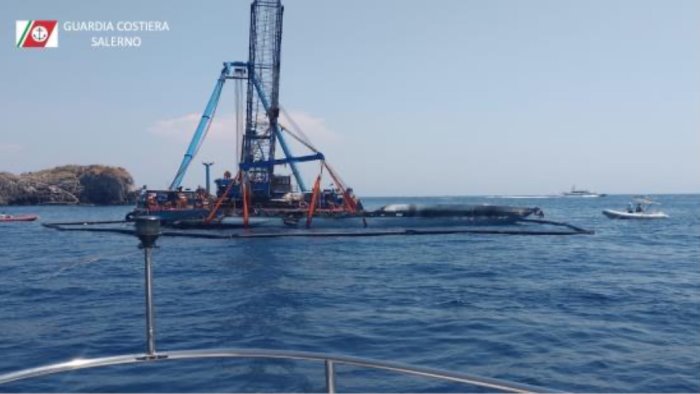 "L’attività ha richiesto approfonditi calcoli e numerose immersioni per posizionare le fasce intorno allo scafo, unica parte rimasta integra dell’imbarcazione, e una cornice di sicurezza e vigilanza disposta dal Comandante della Capitaneria di Porto di Salerno con impiego di unità navali e anche dei sommozzatori del Nucleo Subacquei Guardia Costiera.