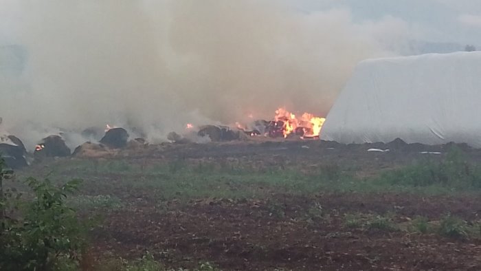 Colpite le balle di fieno accatastate, che immediatamente hanno preso fuoco. Stando ad una prima stima, sarebbero circa 300 quelle distrutte dalle fiamme.