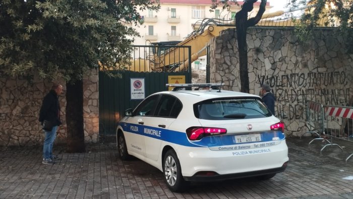 La polizia municipale di Salerno ha sequestrato il cantiere dove sono in corso i lavori di abbattimento dell’ex scuola delle suore, in via Pisacane nel quartiere Torrione.