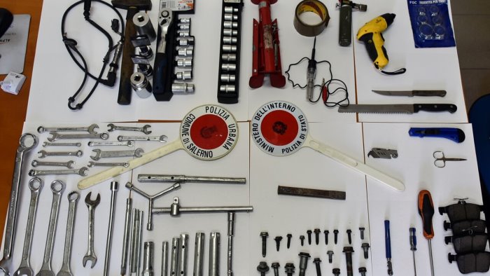 A Salerno, nel tardo pomeriggio di ieri, gli agenti della polizia municipale in abiti civili, sono etrati in azione a piazza della Concordia, insospettiti dalla presenza di un'auto con targa polacca con a bordo tre persone. Eseguito un controllo. Ai tre uomini, di nazionalità georgiana, sono stati sequestrati il veicolo ed un borsone con all'interno numerosi arnesi da scasso.
