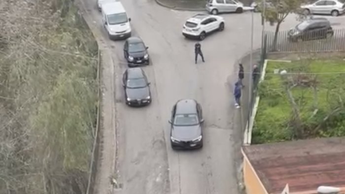 La Polizia di Stato ha identificato l'uomo che, nel pomeriggio di ieri, ha esploso un colpo d'arma da fuoco nel rione Petrosino. Il fatto era stato immortalato con un telefono cellulare ed il video è diventato virale. Dalle immagini si vede in modo chiaro quanto accaduto: una Alfa Romeo Stelvio di colore scuro, uscendo da via Pellegrino Cucciniello, percorre ad alta velocità via Fratelli Magnone; un'altra auto di colore bianco è ferma quasi al centro dell'incrocio. Una persona poco distante dalla vettura avanza a piedi e, dopo aver percorso qualche passo, esplode un colpo d'arma da fuoco all'indirizzo della Stelvio. Il tutto mentre sul marciapiede ci sono altre tre persone a piedi.