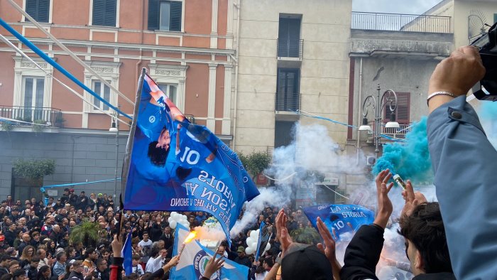 A scortare l'ingresso della bara all'interno della chiesa anche le bandiere del Napoli, una della grandi passioni di Rosario.