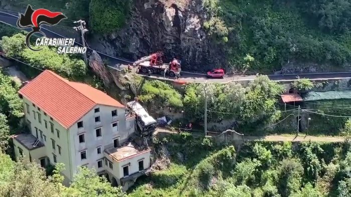 Ci sono volute diverse ore, ma si sono completate nel pomeriggio le operazioni di recupero del bus turistico precipitato lo scorso 8 maggio tra i tornanti di Ravello.