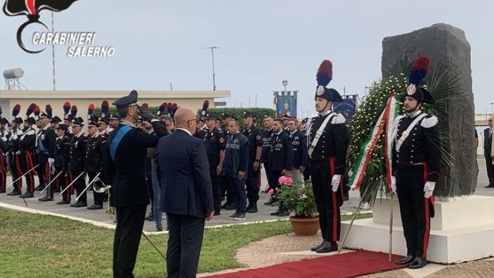 Le celebrazioni sono continuate nel tardo pomeriggio con la cerimonia militare presso il “Lido del Carabiniere” dove, per l’occasione, è stato schierato un Reparto di formazione, in armi, composto anche da Comandanti di Stazione e da una rappresentanza dei Reparti dell’Organizzazione Speciale presenti della Provinciale di Salerno.