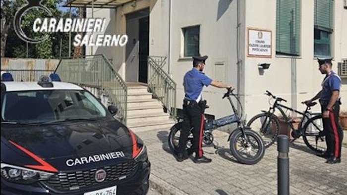 I militari salernitani lo ritengono responsabile di aver portato via due biciclette elettriche, parcheggiate nell'area di sosta di un ristorante del luogo.