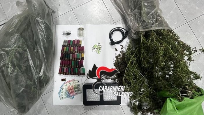 Sottoposto a perquisizione domiciliare, l'uomo è stato trovato in possesso di 4 piante di marijuana per un peso complessivo di 4 chili, la somma in contanti di 105 euro e materiale per il confezionamento.