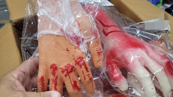 La merce - in vendita per la festa della "notte delle streghe" - violava il codice del consumo e le normative comunitarie perché sprovvista degli standard di sicurezza necessari: impossibile stabilire il produttore/importatore, il Paese di provenienza, le indicazioni in lingua italiana e la natura dei materiali utilizzati.