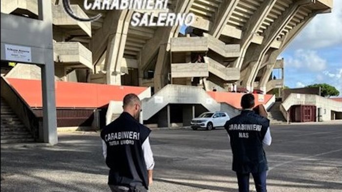 Blitz dei Carabinieri della Compagnia di Salerno allo Stadio Arechi. Controlli messi in campo insieme ai militari del Gruppo Tutela della Salute di Napoli e del Nucleo Ispettorato del Lavoro di Salerno, nonché dagli Ispettori dell’ASL salernitana.