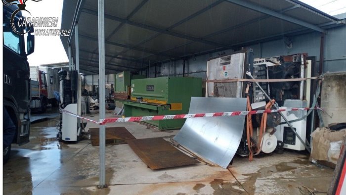 Due persone sono state deferite, da parte del NIPAAF Carabinieri di Salerno, ed è scattato anche il sequestro di un piazzale di circa 1000 mq con 900 t di rifiuti metallici che su di esso insistevano, nell’ambito di una attività di recupero di rifiuti nella zona industriale di Sarno. I rifiuti erano stoccati in luoghi non autorizzati e presenti in quantità molto superiore rispetto a quelle consentite.