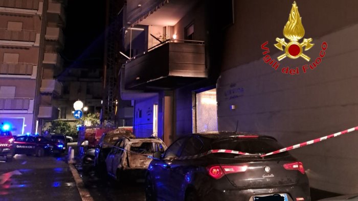 Paura nella notte a Pontecagnano Faiano per un incendio divampato in via Potenza. Intorno alle 3, per cause da accertare, le fiamme hanno coinvolto tre autovetture parcheggiate nei pressi di una pizzeria del posto. I Vigili del Fuoco di Salerno si sono prontamente adoperati al fine di evitare ulteriori danni anche allo stabile sovrastante in quanto il calore ha danneggiato una parte della facciata, provocandone la caduta dell'intonaco. I caschi rossi hanno messo in sicurezza la zona, transennando con nastro segnaletico e lasciando il posto solo dopo aver raffreddato completamente le carcasse delle auto. Sono in corso accertamenti per ricostruire la dinamica di quanto accaduto. Sul posto sono intervenuti anche i carabinieri della compagnia di Battipaglia.