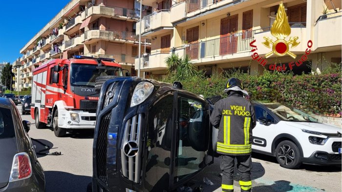 Incidente stradale questa mattina a Salerno: intorno alle 9:30, in via Quintino di Vona al quartiere S. Eustachio nei pressi della chiesa, un'auto si è ribaltata.