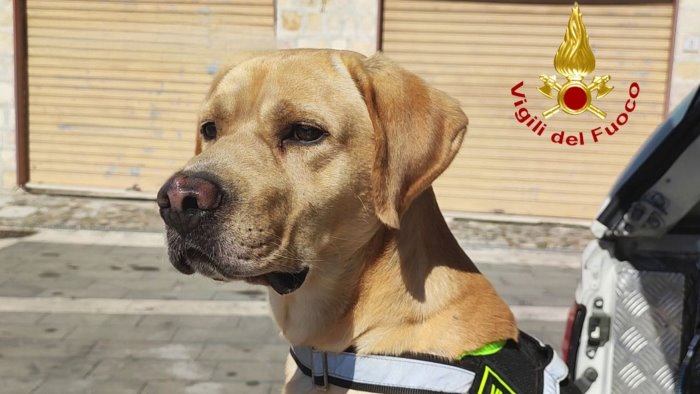 Festa di 5º compleanno per Ben, il vigile del fuoco a quattro zampe del nucleo cinofili in servizio al comando di Salerno.