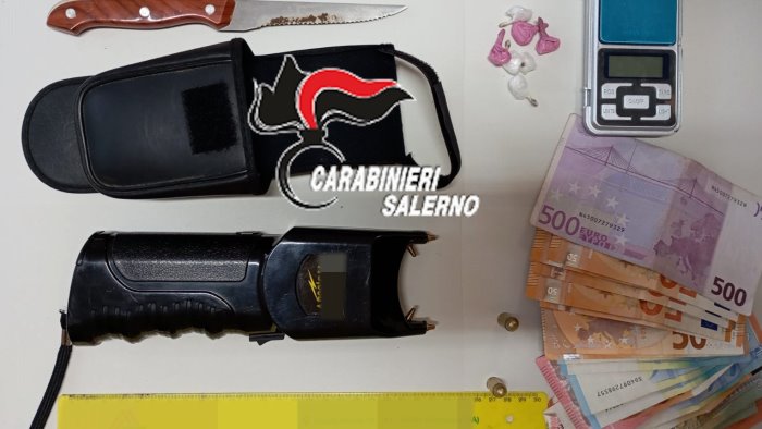 Nel corso di un controllo il presunto spacciatore avrebbe prima spintonato un militare e poi a, seguito di perquisizione, sarebbe stato trovato in possesso di cocaina e crack suddivisa in dosi per un peso complessivo di 1,9 grammi circa, della somma in contanti di 1.150 euro, di un bilancino di precisione, di due proiettili calibro 9*17, due coltelli nonché una pistola elettrica “taser".