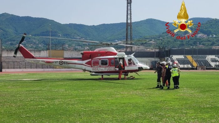 Trasportati fino allo stadio comunale di Cava de' Tirreni entrambi sono stati assicurati alle cure del 118 sul posto, in discreto stato di salute.