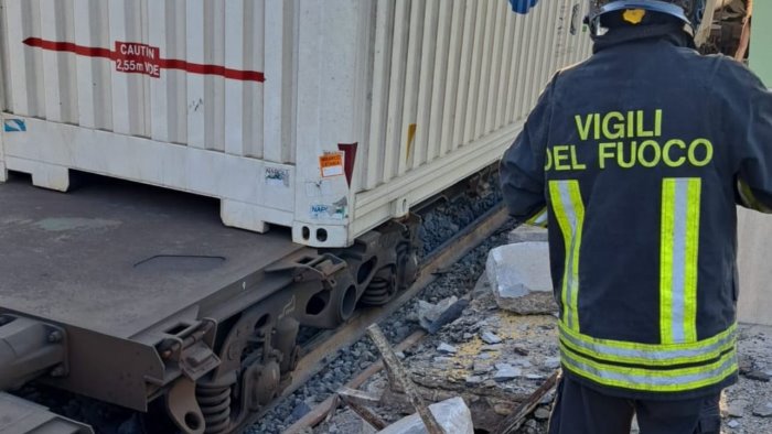 Per cause in corso di accertamento un treno merci è parzialmente deragliato. Tanta paura ma non si registrano feriti. Scattato l'allarme, sul posto sono intervenuti i Vigili del fuoco ed il personale Rfi.