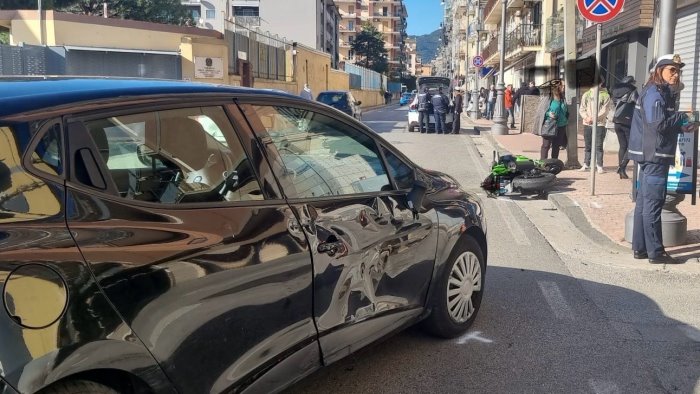 Un incidente stradale si è verificato questa mattina in via posidonia a Salerno. Nell’impatto sono rimaste coinvolte un’auto, una moto ed un pedone. Ad avere la peggio è stata una donna che si trovava sul marciapiede e che è stata colpita dal motociclo. Soccorsa dai sanitari del 118, è stata trasportata in codice rosso al “Ruggi” dove è stata ricoverata per le fratture riportate. Sono in corso accertamenti da parte degli agenti della Polizia Locale di Salerno. Secondo una prima ricostruzione pare che l’auto, nel tentativo di svoltare a destra, si sia scontrata con la moto che, cadendo, ha colpito il pedone. Sul posto anche il personale di Strade Sicure per la messa in sicurezza dell’arteria.