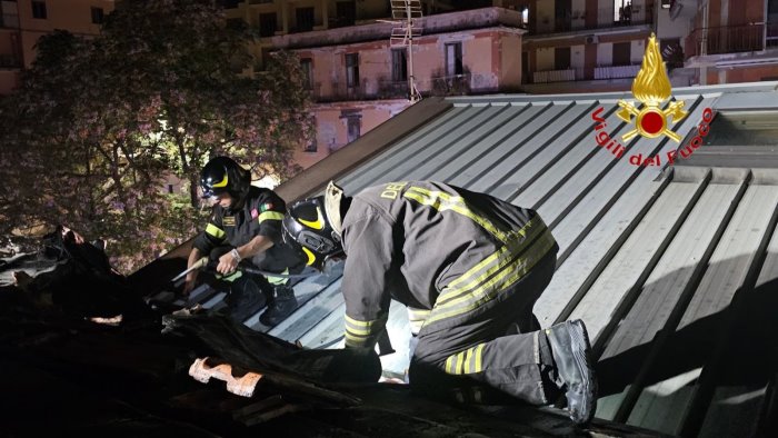 A Salerno, poco prima della mezzanotte, in via Lungomare Colombo, all'altezza del porticciolo di Pastena, alcuni abitanti del posto hanno allertato i Vigili del Fuoco per delle fiamme che fuoriuscivano da un sottotetto. Giunti sul posto, con l'ausilio di un'autoscala, i caschi rossi sono entrati nel locale posto al secondo piano mentre un'altra squadra operava dall'alto, e hanno immediatamente estinto le fiamme che avevano interessato la copertura in legno e la guaina.