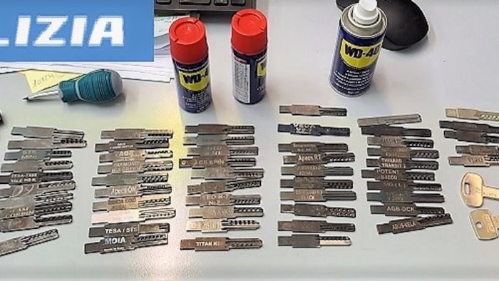 Sono stati bloccati mentre stavano effettuando un sopralluogo a Mercatello. Sequestrato un ampio armamentario di chiavi universali, lubrificanti e immagini scattate ai cilindri delle porte, che negli ultimi trenta giorni avrebbe consentito al gruppo di mettere a segno almeno tre "colpi" nella zona orientale di Salerno.