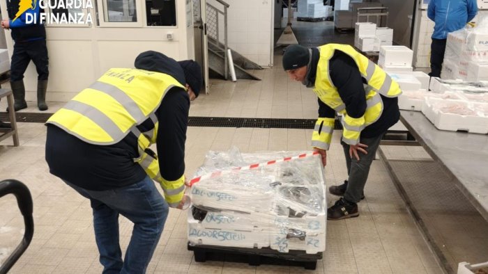 Un'ingente quantità di pescato, sprovvisto di etichettatura e di ogni altra informazione sulla tracciabilità, è stata sequestrata nei pressi del mercato ittico di Salerno.