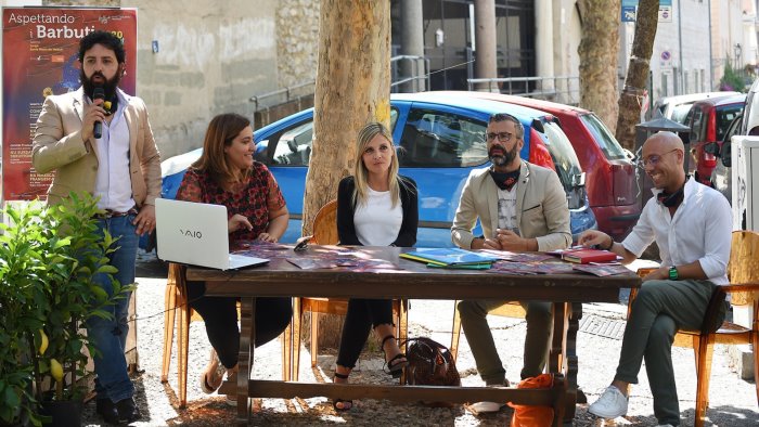 L'Accademia Scena Teatro e la Bottega San Lazzaro hanno presentato questa mattina, rigorosamente all'esterno dell'ex Chiesa di Sant'Apollonia a Salenro, la quarta edizione di "Aspettando i Barbuti": il primo evento post covid19. Otto le serate (costo del biglietto 10 euro, www.postoriservato.it) che prenderanno vita, alle ore 21 nel cuore della città vecchia, sul palco di Largo Santa Maria dei Barbuti. Gli onori di casa spetteranno, sabato 4 luglio, a Lalla Esposito.