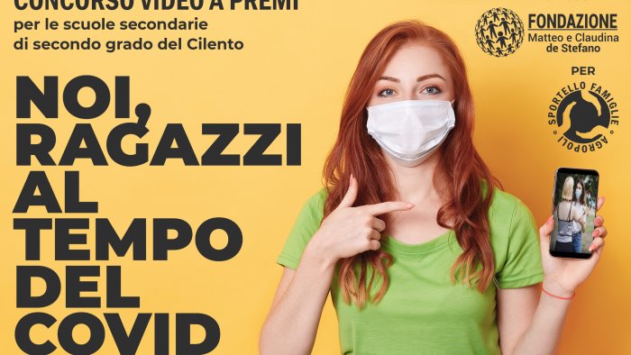 Con la ripresa delle lezioni in presenza, partono le iscrizioni al concorso video a premi “Noi, ragazzi al tempo del Covid” che, tra spunti di riflessione, estro e creatività, intende dare voce all’esperienza dei giovani, messi a dura prova dall’emergenza sanitaria. Indetto dallo Sportello Famiglie della Fondazione Matteo e Claudina de Stefano, il contest è rivolto agli alunni residenti nel territorio cilentano, frequentanti le scuole secondarie di secondo grado di Salerno e provincia, i quali potranno partecipare inviando la loro opera originale e inedita di massimo 7 minuti, entro il 30 Aprile 2021.